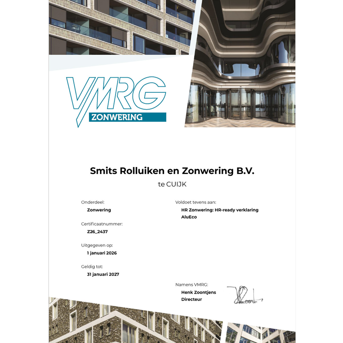 Smits Rolluiken en Zonwering is aangesloten bij VMRG